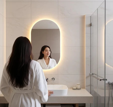O Espelho Oval com LED cria um efeito moderno e sofisticado que deixa o ambiente mais iluminado, elegante e muito mais bonito.